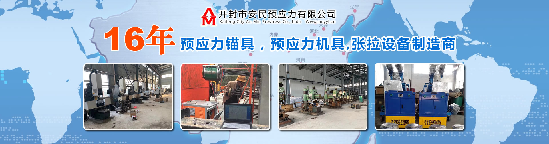 開封市安民預應力有限公司KAIFENG CITY ANMIN PRESTRESSED CO LTD. 開封市安民預應力有限公司是研制、生產、銷售各種預應力產品及預應力施工的專業(yè)廠家。公司主導產品為AM、BM系列錨具,鐓頭錨、弗氏錨、P型錨、精軋螺紋鋼錨具及配套各系列干 斤頂、高壓油泵、灰漿泵、攪拌機、制管機.智能張拉.智能壓漿等機具產品。公司產品已達到GB/14370-2007標準及國際預應力混凝土協(xié)會《FIP1993》標準。 公司設備**,技術力量雄厚。原材料從采購、生產、檢驗和服務的全過程中,均在國際標準質量體...